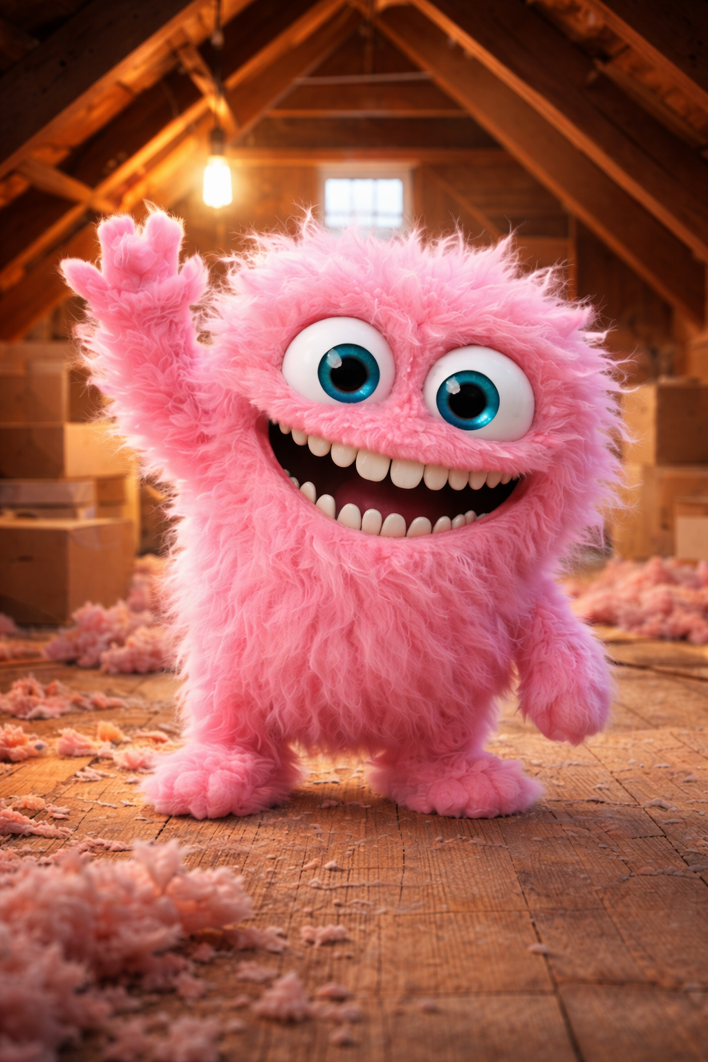 Nobody knows exactly how Itchy ended up in the attic. One day he simply appeared — pink, fluffy, and wide-eyed — nestled between two rolls of fiberglass insulation and a box of holiday ornaments nobody had touched since 2003. He waved. Nobody waved back. He kept waving anyway.